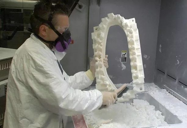 其加工過程是,由計算機控制的激光頭按一定軌跡進行掃描,在激光經過的位置上,塑料微粉受熱熔化并粘結在一起,每掃描完一次,微粉裝置就撒一層薄粉,這樣,經過反復掃描,就形成了具有一定形狀和尺寸的制品。現在,國內已有一些企業能夠生產激光掃描成型機和塑料微粉,但設備性能不穩定,微粉的品種牌號也少。